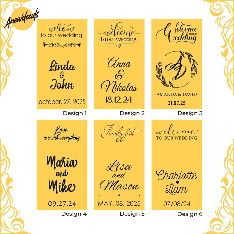 - 6 DISTINCT DESIGN CHOICES. Select from 6 elegant designs for your welcome to our wedding decal to match any style, ensuring your wedding mirror decal complements your venue’s theme beautifully.