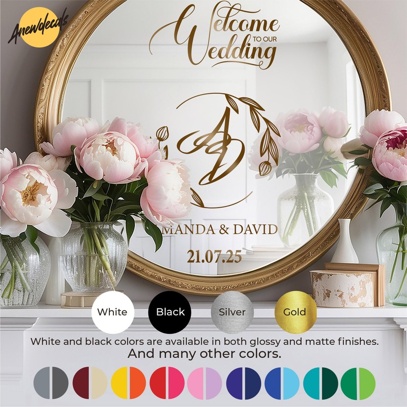 - PERSONALIZED TOUCH. Add names or a special message with our customizable wedding mirror decal. Create a unique, memorable entrance that warmly greets guests with a personalized welcome.