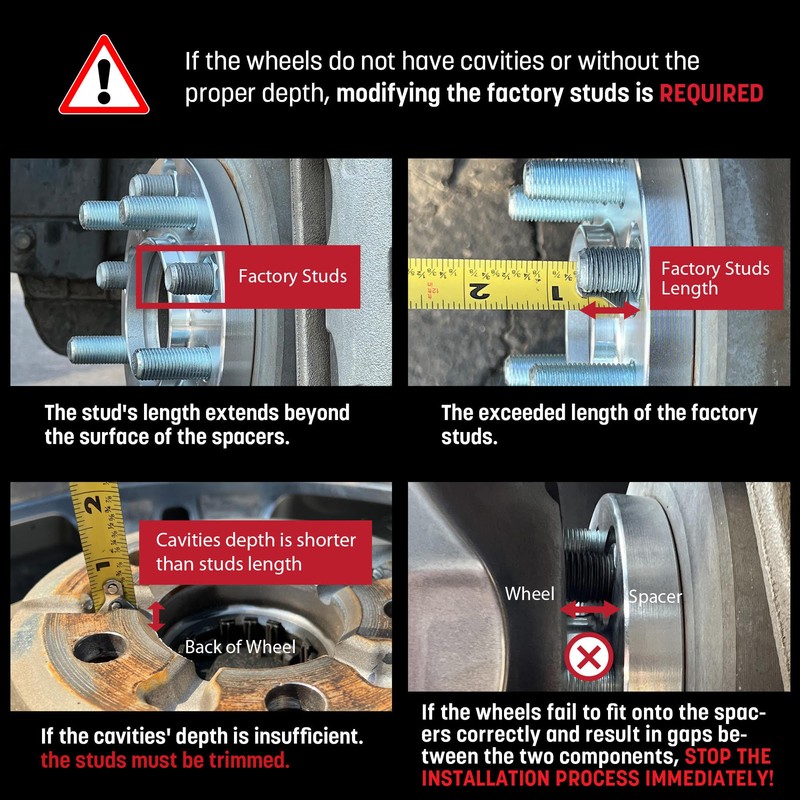 - [Compatibility] Enable 5x120 hubs to accommodate 5x115 wheels. If your vehicle has 14x1.5 studs, you'll require M12x1.5 thread lug nuts to complete the wheel installation on the adapters. Note: Factory studs may need trimming if they are too long for the wheels to fit properly on the adapter.