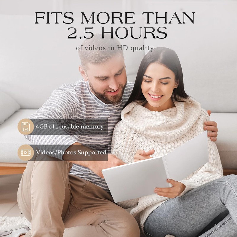 - 📱 Extended Video Storage & Battery Life:Store hours of video content with the 4GB internal memory, and enjoy up to 2.5 hours of continuous playback with the built-in 1500mAh rechargeable battery. Charge quickly via the USB-C port for maximum convenience.