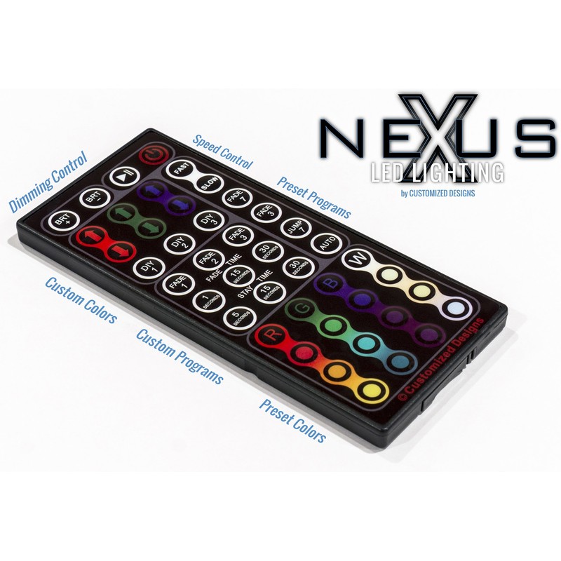 - Customized Design's one of a kind NeXus LED Remote Control lets you create custom color changing programs directly on the remote