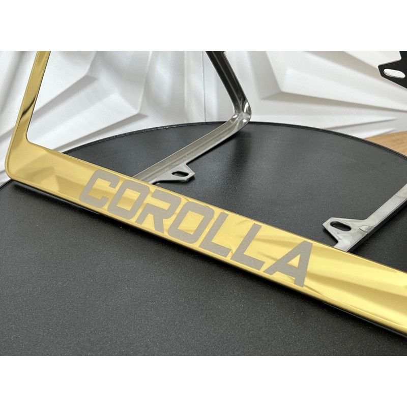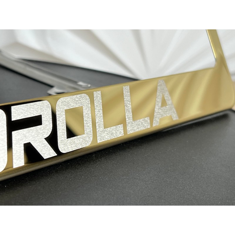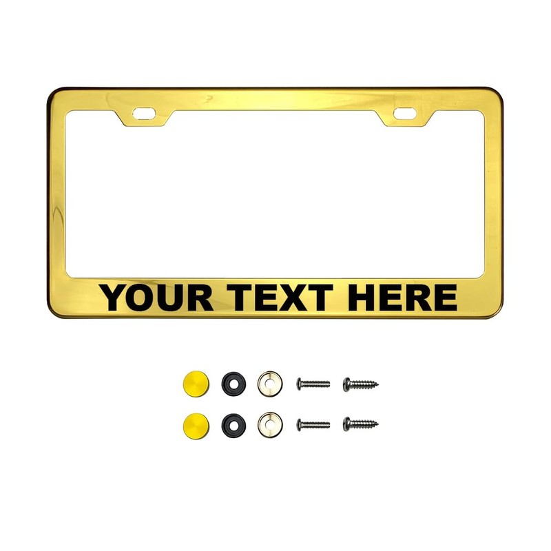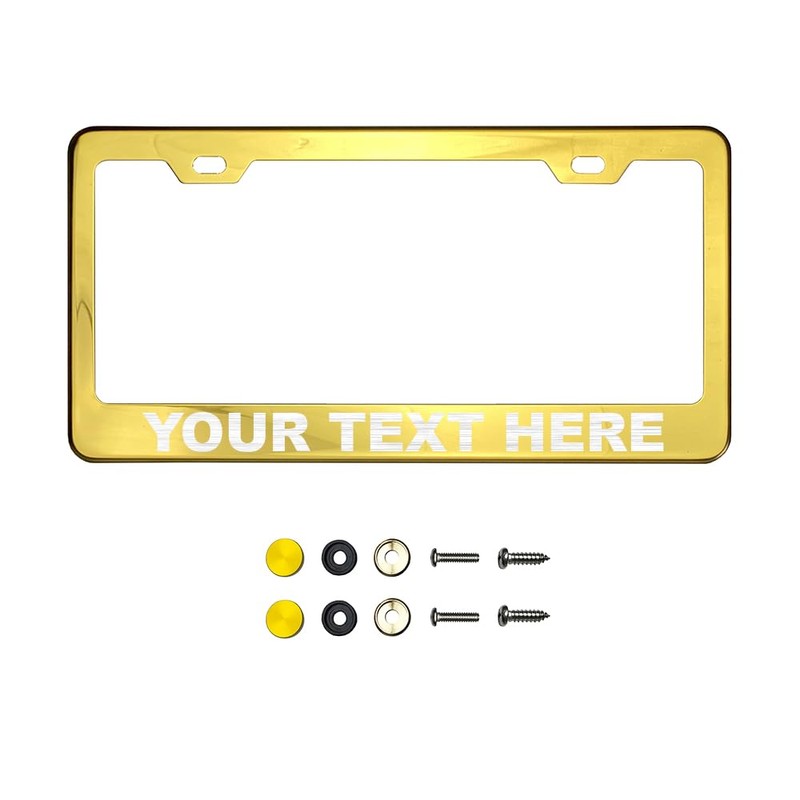 Customized Laser Etched Gold Chrome T304 Stainless Steel License Plate Frame Universal Fit, Aluminum Screw-On Cap Cover, Rust-Proof, Weather-Proof - Includes Stainless Steel Screws (Qty: 1 Frame)