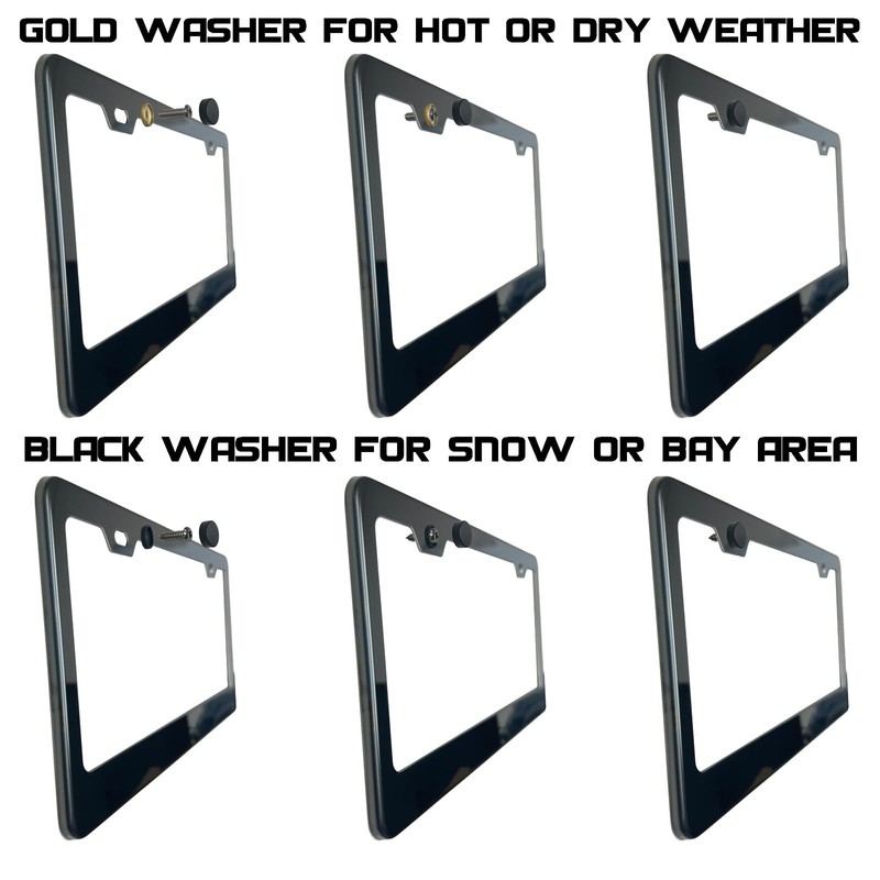 - DURABILITY: Silicone Back Guard with T304 Stainless Steel License Plate Frame is designed with durability in mind. It comes equipped with two Aluminum twist-on screw caps, allowing for secure installation in various weather conditions. The option to insert either a metal or plastic washer provides added protection against snowing or bay area weather conditions. Rest assured that this product will withstand the test of time and weather elements.