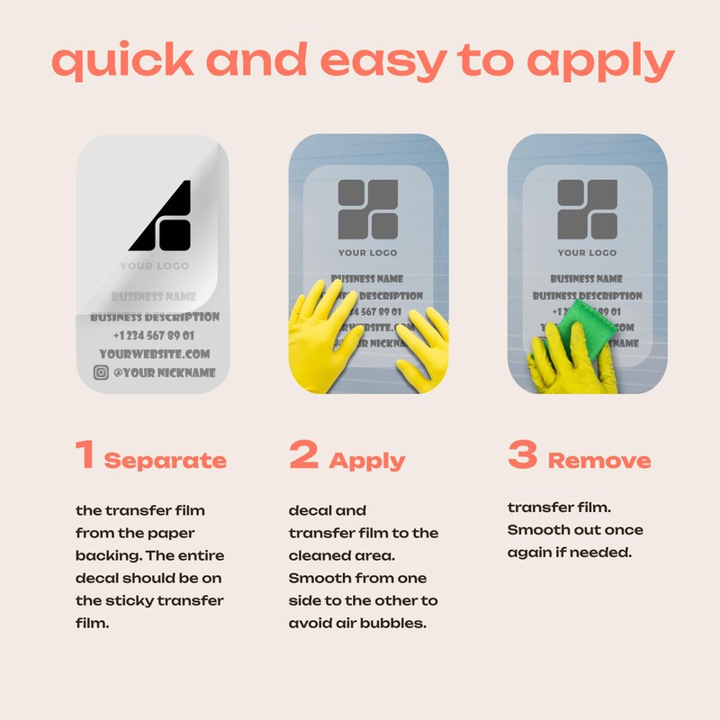 - EASY APPLICATION: Every custom sticker is simple to apply, holds strong, and removes cleanly from smooth surfaces like windows, doors, and panels.