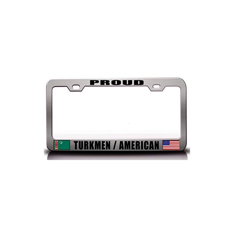 Customola Proud Turkmen American Nationality Patriotic Steel License Plate Frame Ch