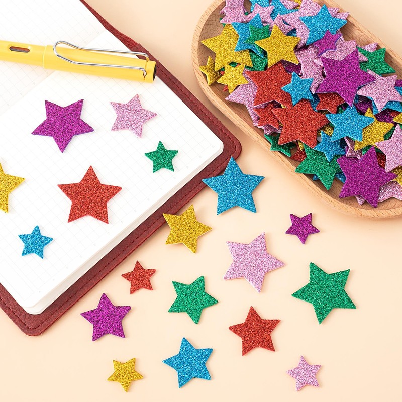 - You will get: 180pcs glitter star foam stickers colorful in 3 sizes, enough to meet your DIY needs.