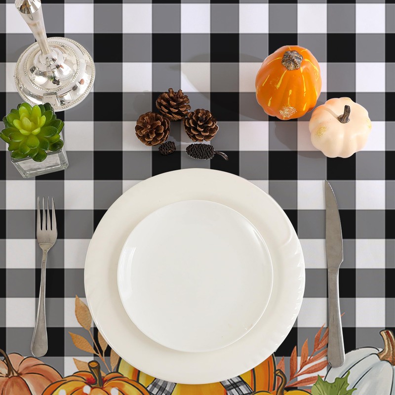 CUSUGBASO Thanksgiving Tablecloth 60x84 Inch Rectangle - Black Plaid Pumpkins Fall Decorations for Home - Water Resistant Harvest Fall Table Cloth Rectangle for Party, Dinning, Home