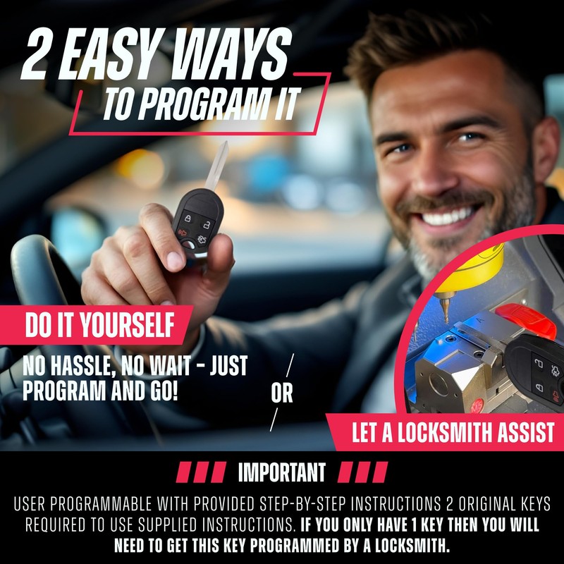 - Easy Programming with Step-by-Step Guide – Program it yourself in minutes using two working keys—we include a detailed guide & video link for simple instructions step by step. Only have one key? No problem! A locksmith can quickly program it for you. Easy and hassle-free!