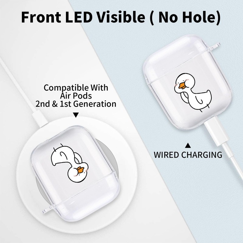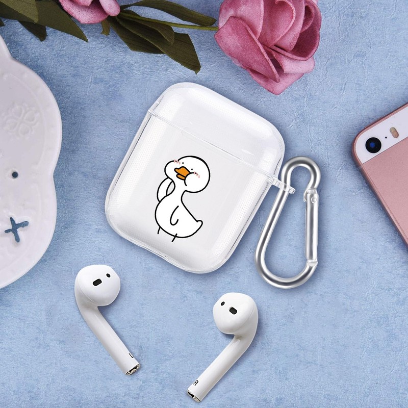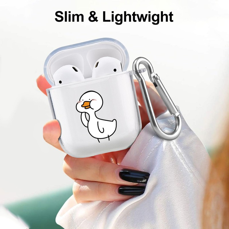 Cute Animal Case for Airpods 1 &2, MAYCARI Transparent Clear Protective Soft TPU Cover, Funny Duck Pattern Design Fun Cases for Girls Kids Teens