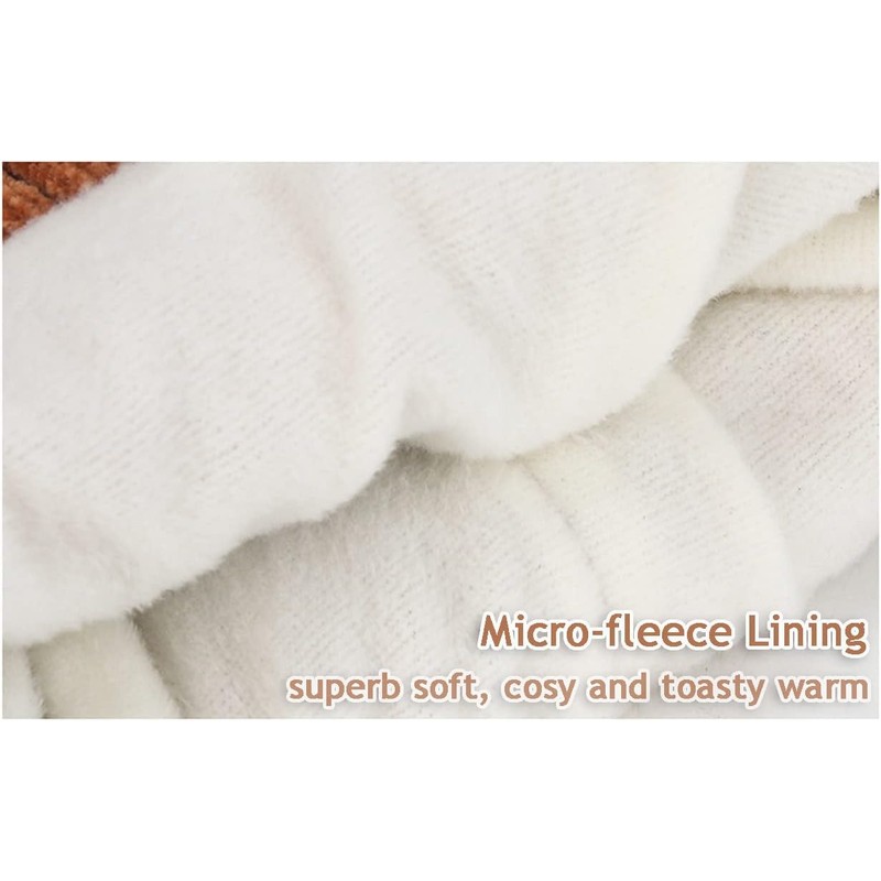 Extra cosy chenille wool knitted and furry fleece lining, makes it super warm, and also extremely durable and washable, compare to other acrylic knitted hat, this material is no pill, no crease, more durable, more warm