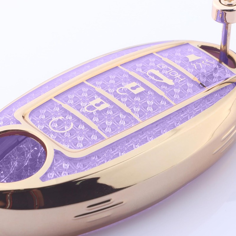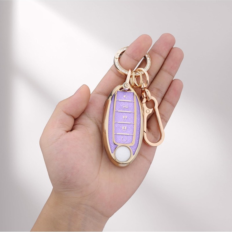 Cute Bling Key Fob Cover for Nissan 5 Buttons, Diamond Cut TPU Case with Keychain, Protective Shell for Altima Sentra Rogue Pathfinder Murano Armada Maxima Versa Smart Key,Purple