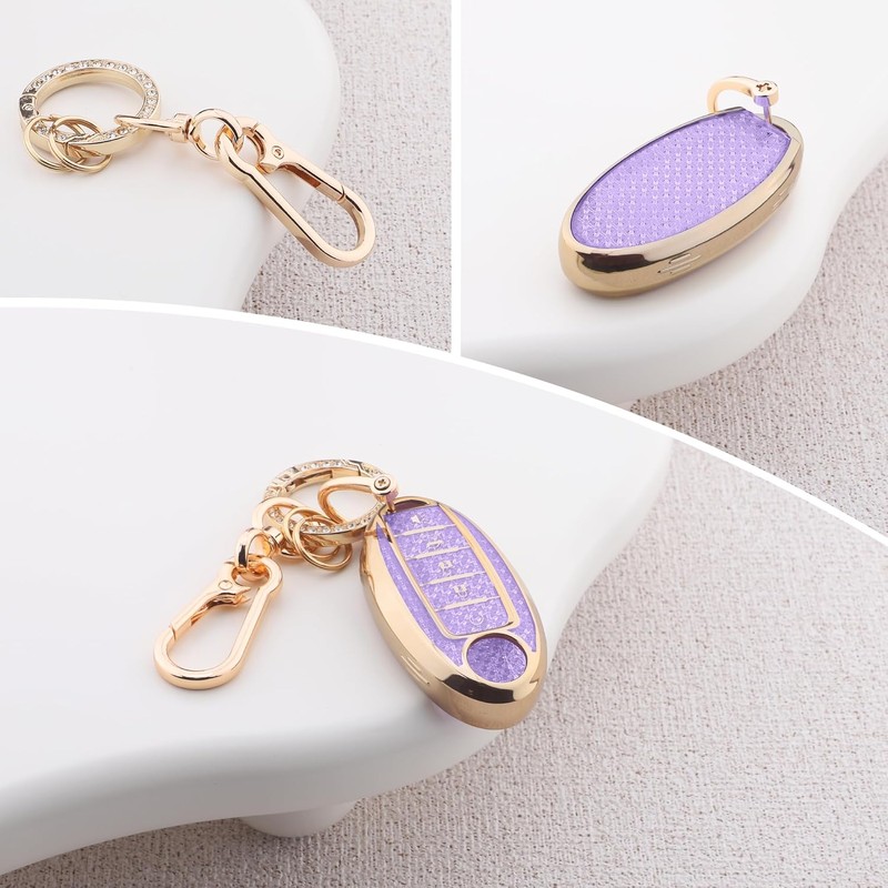 【Designed for Stylish Women】Chic color with glitter finish and gold-tone keychain — crafted for fashion-forward female drivers who value both beauty and practicality. A perfect gift for yourself or a loved one.