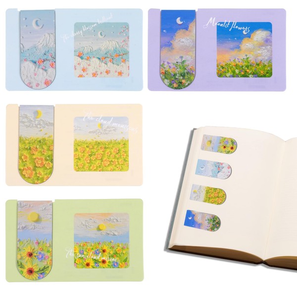 - PACKAGE DETAILS - You will receive 4 Pcs magnetic bookmarks for women in 4 different nature flowers oil painting themes.
