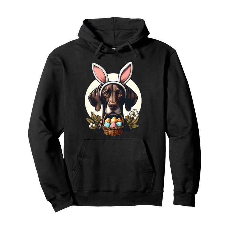 - Celebrate Easter with this adorable design featuring a German Shorthaired Pointer wearing rabbit ears, holding a basket of Easter eggs. Perfect for dog moms, pet lovers, and German Shorthaired Pointer lovers who want to showcase their love for their puppy.