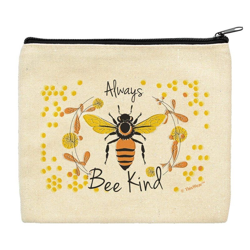 Cute Canvas Makeup Bag Always Bee Kind Bag Bee Makeup Bag Travel Gifts Zip Arts and Crafts Accessory Bag