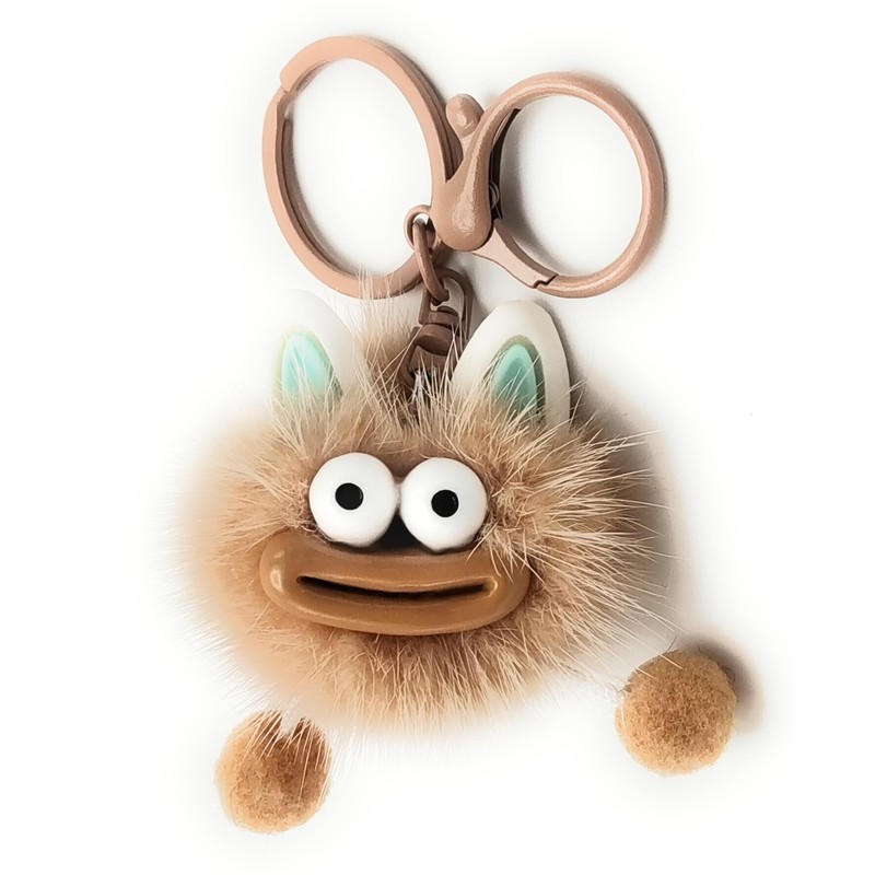 Cute Cartoon Mink Fur Keychain with Big Eyes, Fluffy Ears, and Smiling Mouth - Fun Bag Charm Accessory for Kids and Adults (Coffee)