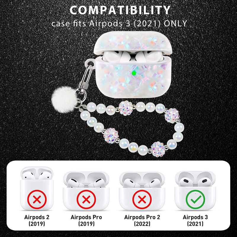 - Perfect compatibility: free access to all functions with the pearl airpod gen 3 case on. Luxury keychain brings more convenience.