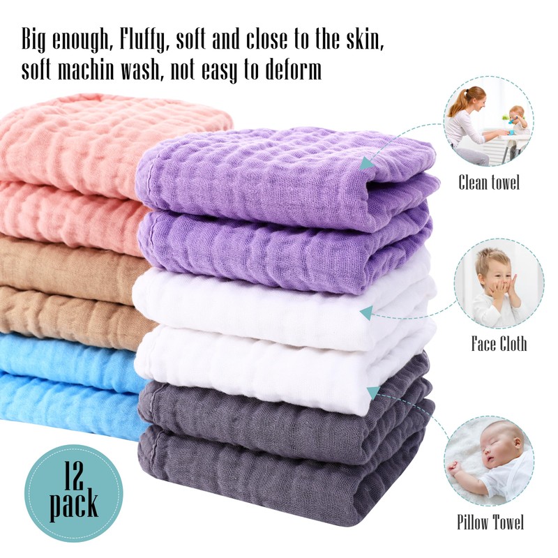 - 【PACKAGE CONTENT】 12 pieces muslin burp cloths, 20 x 10 inches.