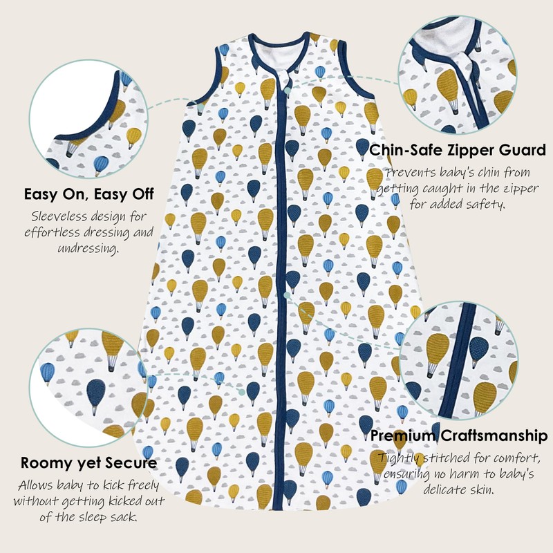 - Luxuriously Soft: Crafted from premium 100% cotton, our baby sleep sacks offer unparalleled comfort and breathability. The sleeveless design and optimal TOG rating of 0.5 ensure your baby stays warm and snug without the risk of overheating.