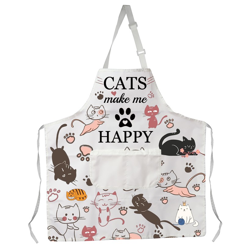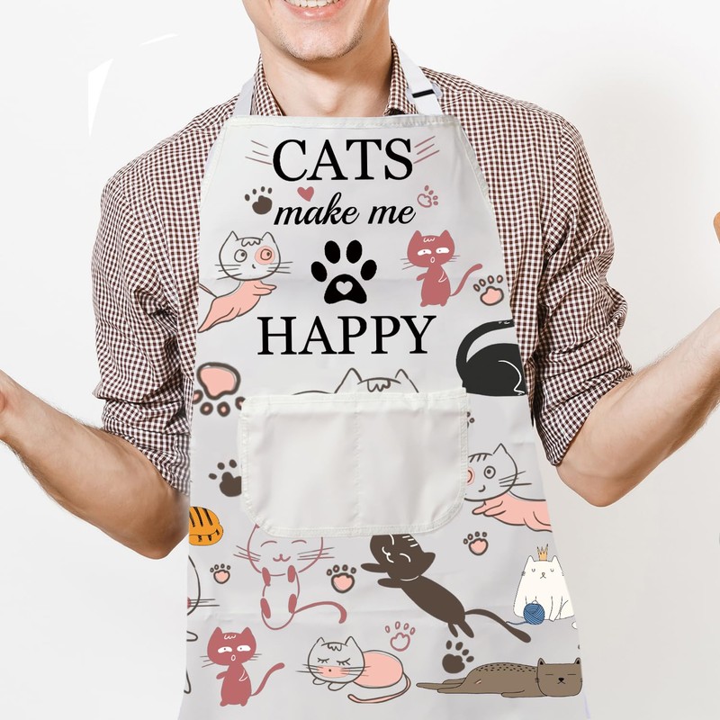 - MATERIAL This Cute Cat Make Me Happy Apron is made of high-quality polyester, which is resistant to dirt and abrasion, Thick but soft and breathable fabric provides you more comfort and satisfaction.