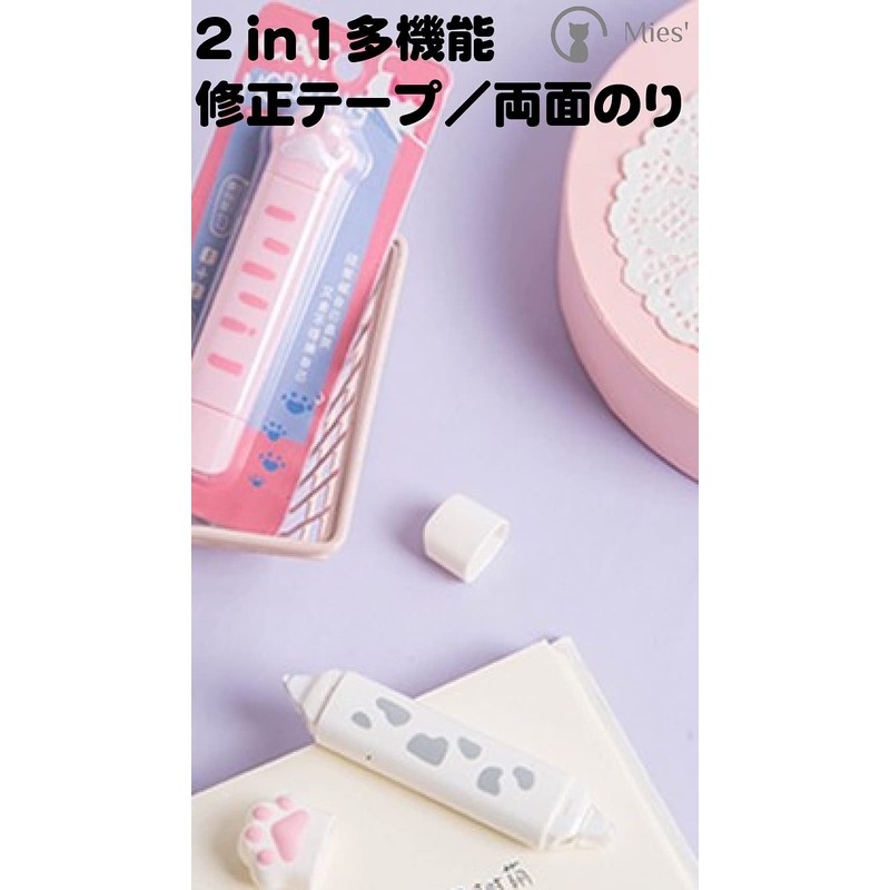 Cute Cat Hand Design 2 in 1 Correction Tape and Double-Sided Tape Set of 2 Double-Sided Tape Correction Stationery Cat Paw Stationery Accessories Cute Stationery