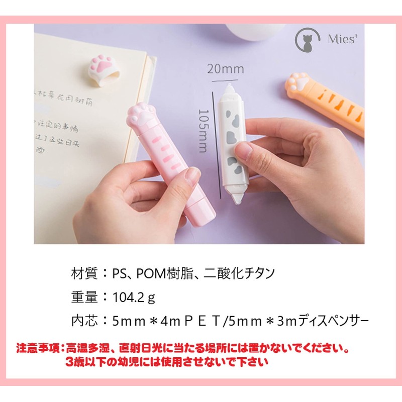 - A set of 2 cute cat hand shaped correction tape and double sided tape for cat legs with different designs
