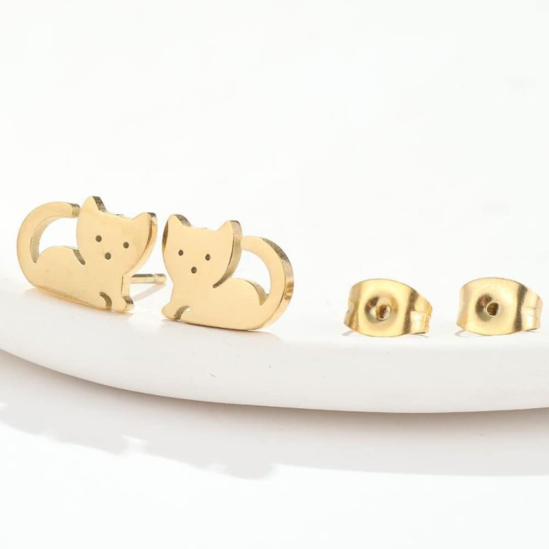 - Minimalist Cat Stud Earrings Size: 8*11mm. Lightweight and comfortable to daily wear.