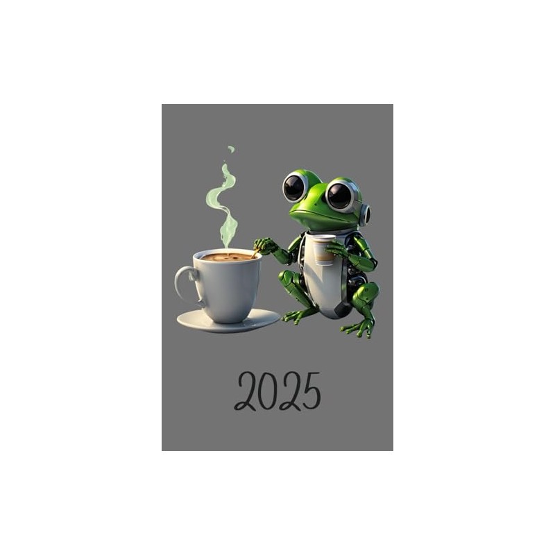 Cute Coffee drinking robot frog Planner 2025 Fantasy-Sci-Fi Organizer for work school uni Diary Journal (circa A5), 6x9 inch grey cover: Calendar for ... meetings - great gift for New Year Christmas