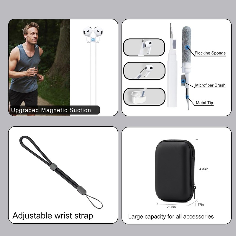 - 【Only For Airpod 4st Gen 2024 Released】【6 IN 1 for AIRPODS 4 CASE ACCESSORIES KIT INCLUDE】1 * for AirPods 4 Case Silicone for women men, 1 * Metal Keychain [Connect to backpack], 1 * Magnetic Anti-lost lanyard [Hooking around neck], 1 * Adjustable Wrist Strap, 1 * Cleaning Pen [Clean the dirt], 1 * Travel Bag [Packed all items and Prevent loss]