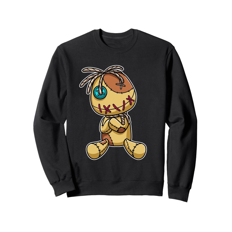 Cute Creepy Voodoo Doll Button Eye Stitch Plush Graphic Sweatshirt