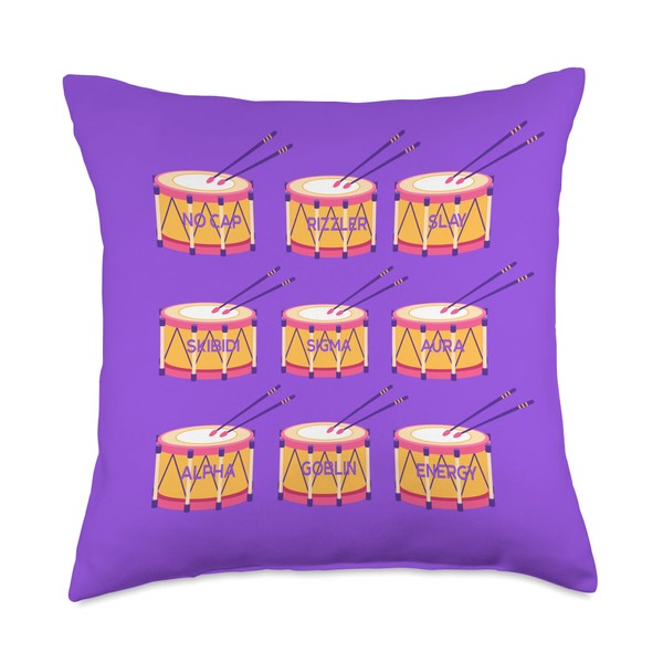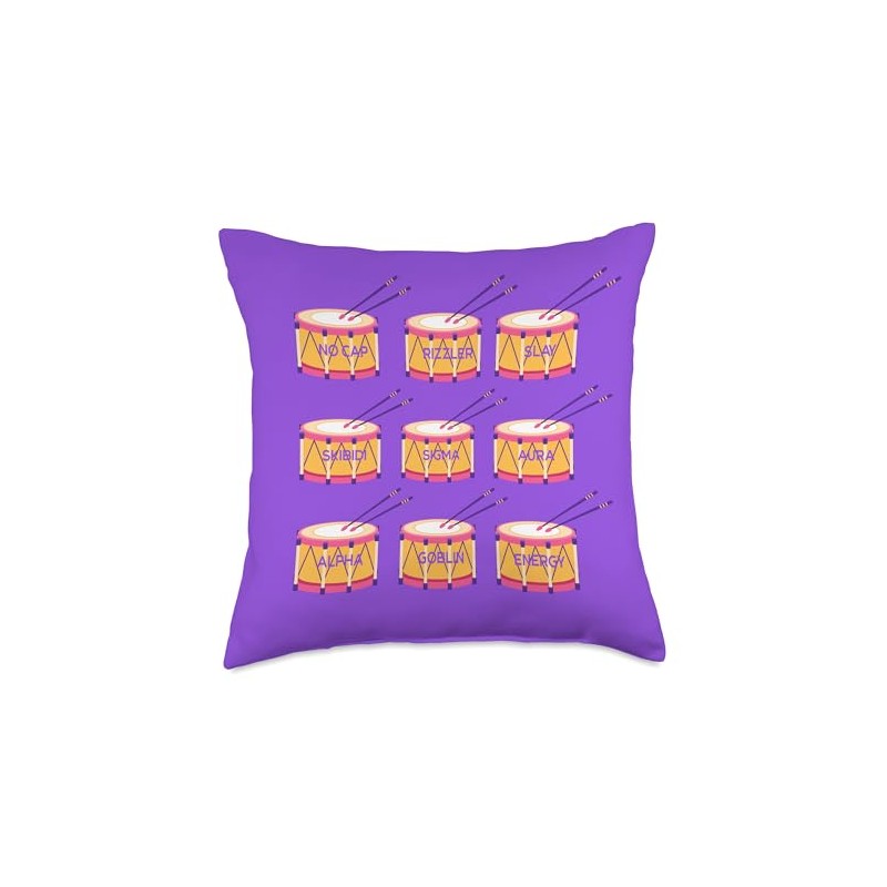 Cute Drummer Funny Jewish Skibidi Purim Gen Alpha Brain Rot Throw Pillow