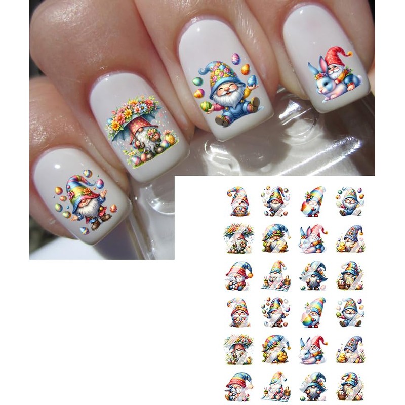 Cute Easter Gnomes Design #3 Nail Art Decals- Waterslide Nail Decals (Adult Small 0.3" inches)