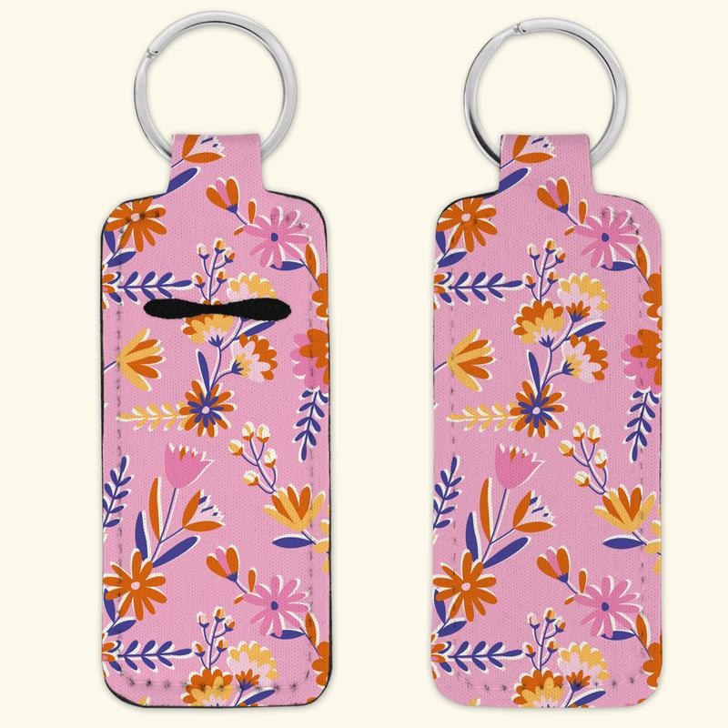 Cute Floral Flowers, Retro Boho, Y2K Pattern Lipstick Chapstick Holder for Keychain, Keychain Gift, Flower Pattern, Keychain Accessories - Pattern: #39