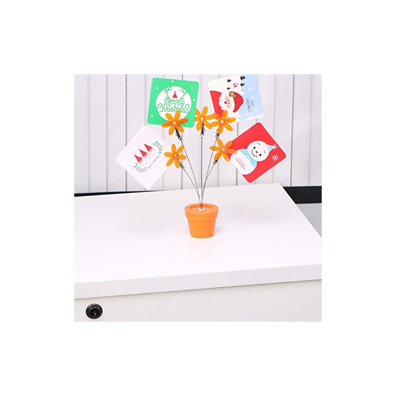 Cute Flower Table Card Memo Holder Stand,1 Pcs Photo Clips Holder Desk Stand for Memo Paper Note Monmory Photo Christmas Wedding Display with Flowerpot Shaped Plastic Base (Orange)