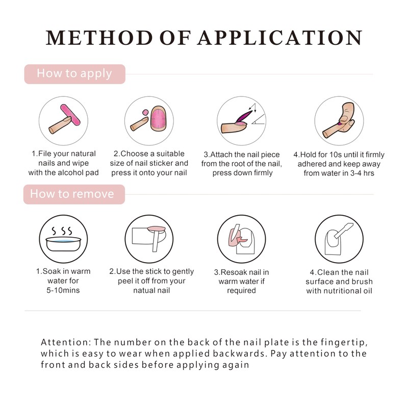 1.Do not remove it abruptly which may leave some mark of the nail stickers on your nail surface.
