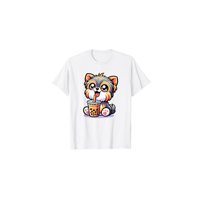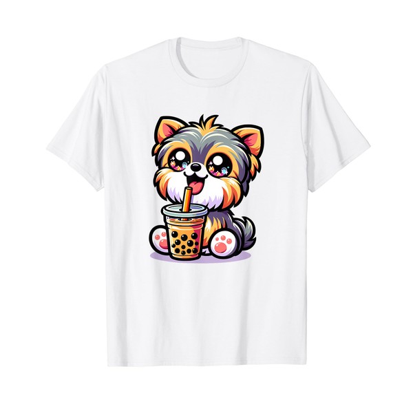 • Adorable chibi Yorkshire Terrier design, sipping boba tea which is ideal for animal lovers and boba enthusiasts.