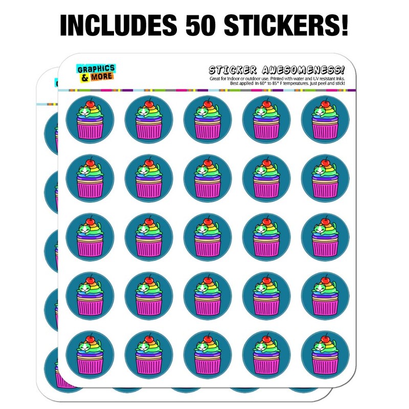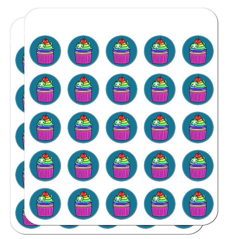 Cute Kawaii Lazy Cat in Rainbow Cupcake Planner Calendar Scrapbooking Crafting Stickers