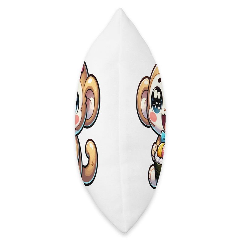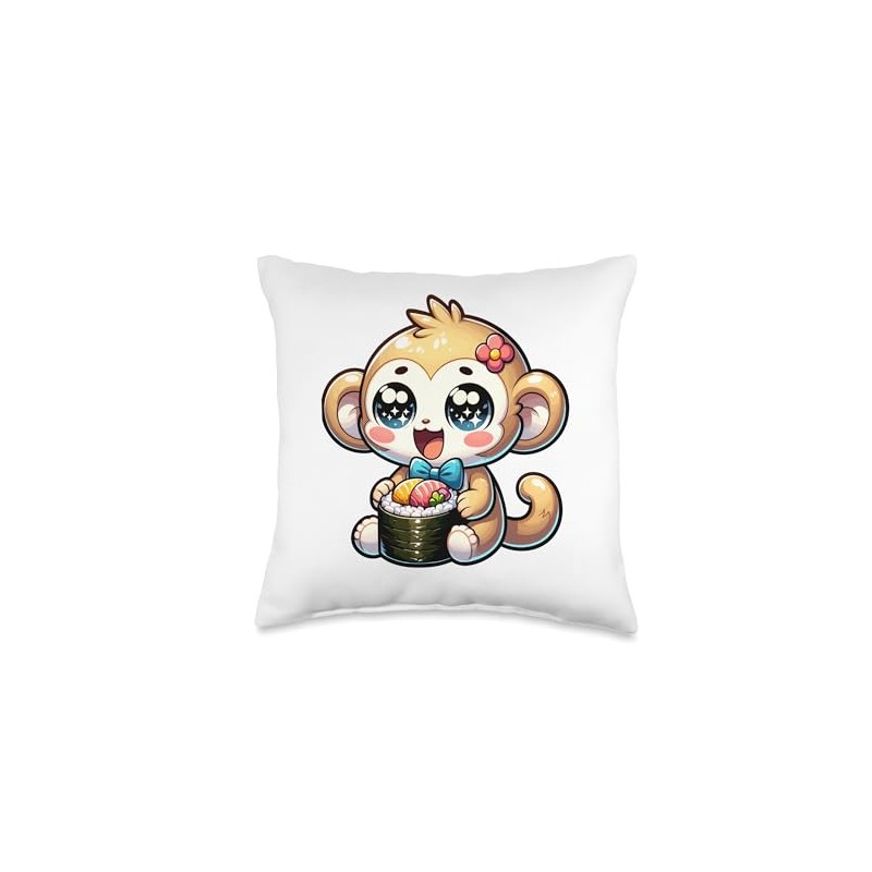 Cute Kawaii Monkey Neck Tie Eating Sushi Japanese Food Throw Pillow