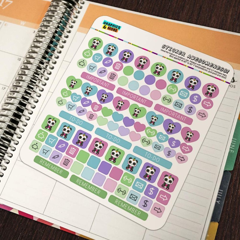 Cute Kawaii Unicorn Panda Holding Heart Planner Calendar Scrapbooking Crafting Sticker Set