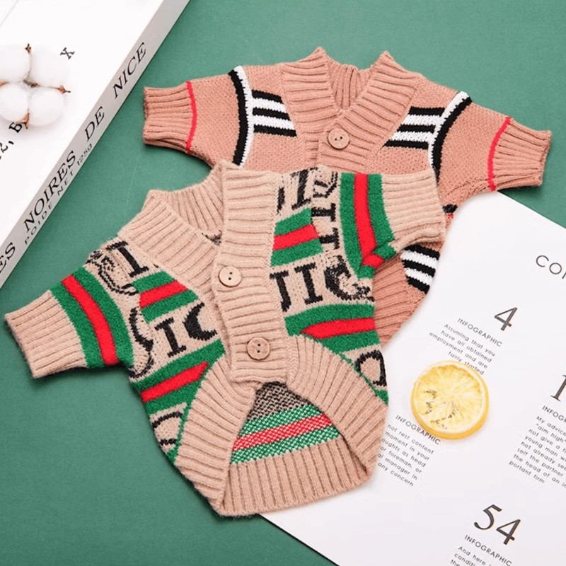 Cute Knitted Cat Sweaters Warm Striped Dog Apparel Thickened Winter Kitten Sw...
