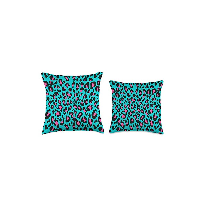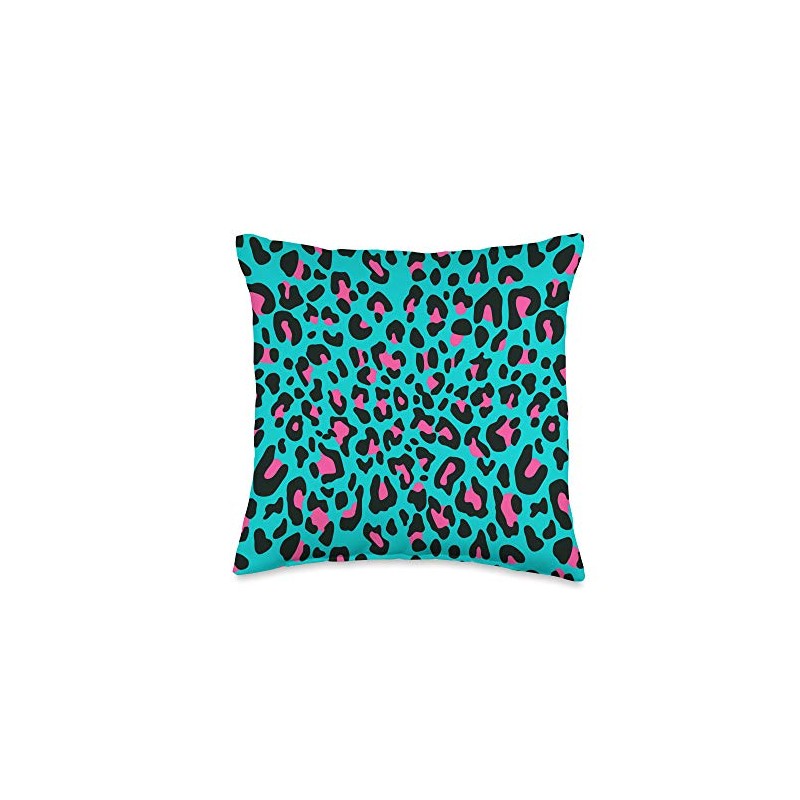 Cute Leopard Cheetah Print Animal Gift Ruby Pink Black Blue Leopard Cheetah Print Animal Pattern Throw Pillow, 16x16, Multicolor