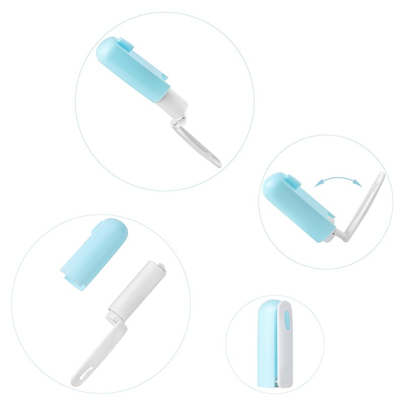 Cute Lint Roller for Clothes Portable Mini Lint Remover Roller Compact Foldable Lint Roller with Cover, Mini Purse Essentials (Blue)