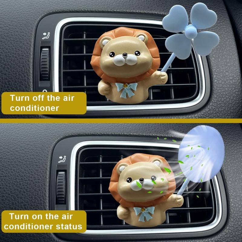 - 【Perfect Decoration】: The car air freshener vent clip is designed in a lion clutching a windmill shape. Its appearance is exquisite and lovely, and the lines are smooth and natural. When the car vent is opened, the windmill blades rotate with the wind, both stylish and romantic, bringing you a pleasant mood every day.