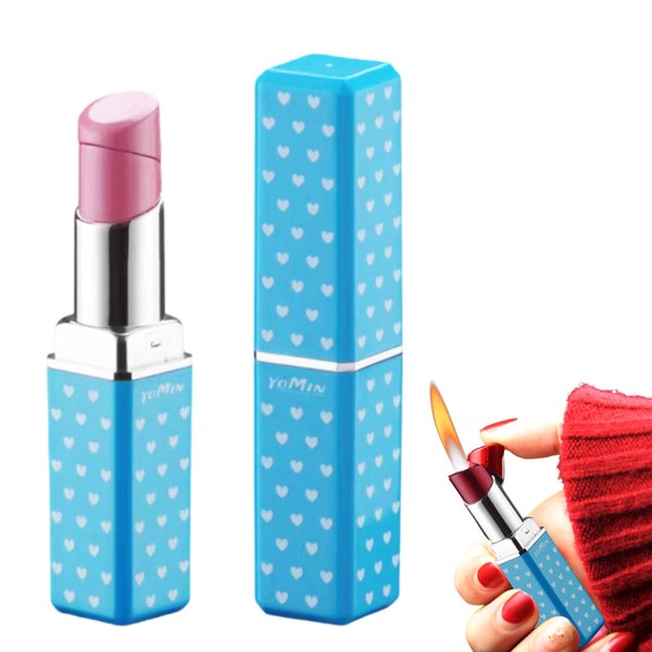 Cute Lipstick Lighter, 2 Pack Soft Flame Refillable Butane Lighter with Flame Adjustment Tool, Novelty Torch Lighter Cool Lighters Gifts for Women,Girls,Lady,Birthday, Anniversary(Without Butane)-Blue