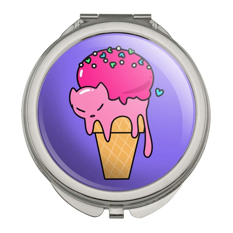 Cute Meowlting Melting Cat Ice Cream Cone Compact Travel Purse Handbag Makeup Mirror