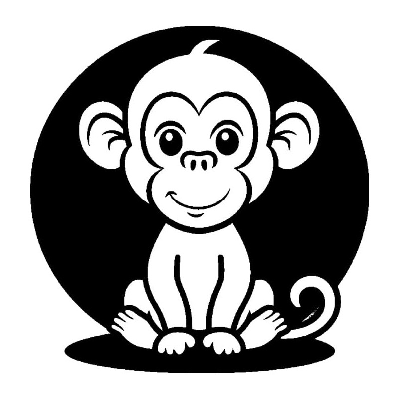 'Cute Monkey Sitting' Rubber Stamp - Unmounted Design for Crafting & Scrapbooking, A7 (RS00053687)