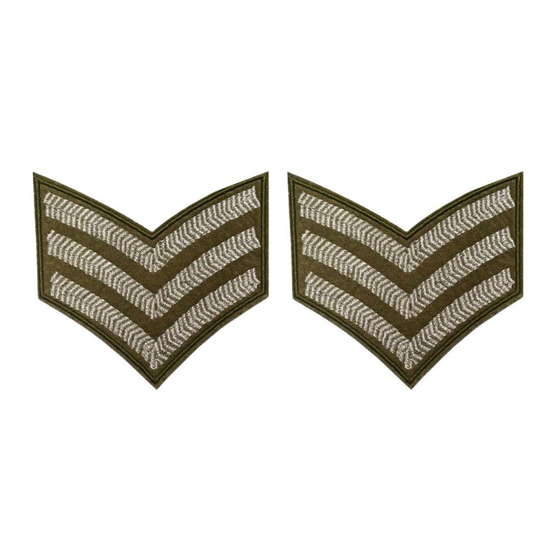 Cute-Patch Big Sergeant Stripes Silver Army Military Embroidered Iron on sew on Patches