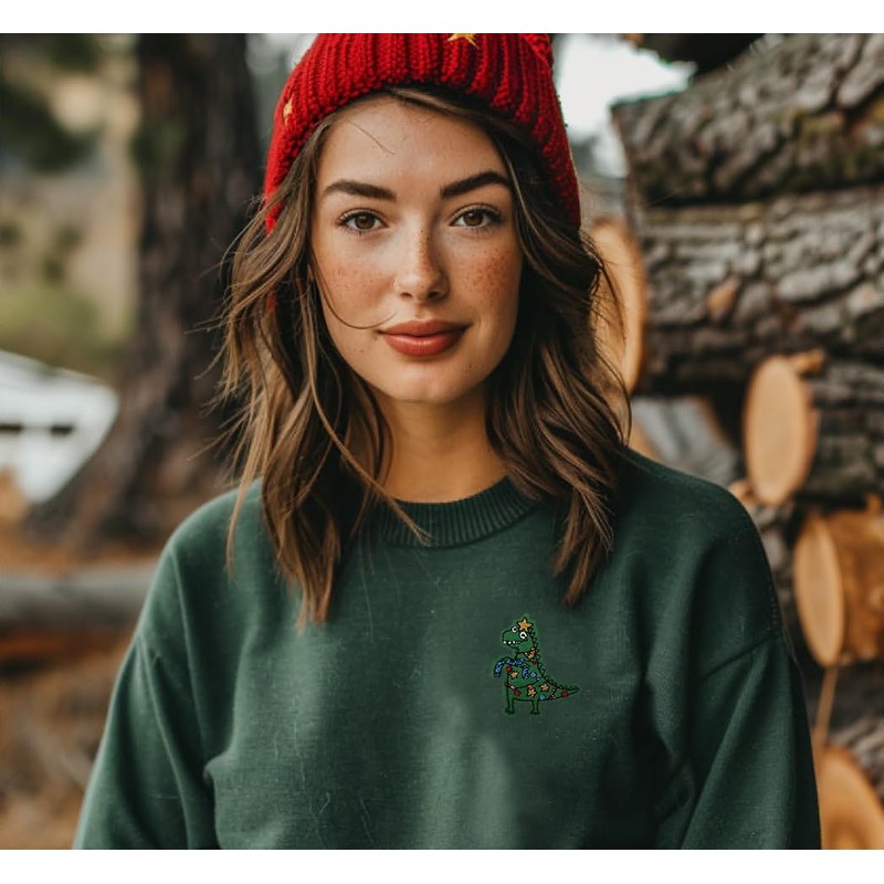 - Fun and whimsical design: The Christmas Tree Dinosaur Embroidered Peel-and-Stick Iron On Patch features a delightful blend of holiday and prehistoric themes, with a cute dinosaur wearing a Santa hat and standing in front of a Christmas tree.