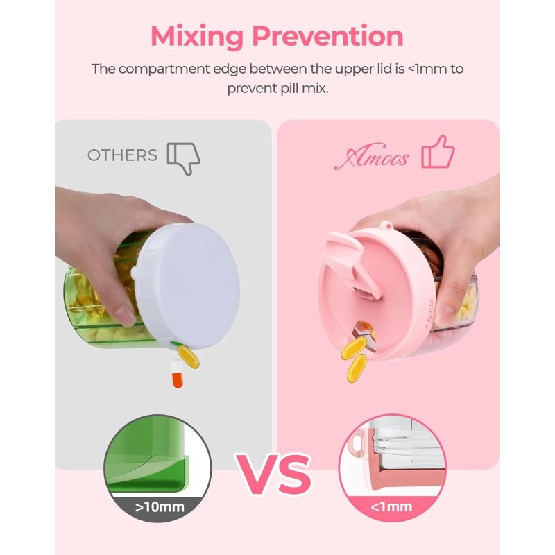 Cute Pill Dispenser with 7 Large Compartments, Portable Pill Bottle Organizer wi