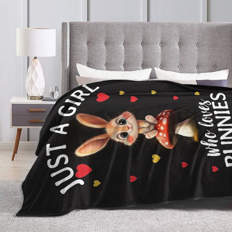 Cute Rabbit Blanket Just A Girl Loves Bunnies Throw Blankets for Girls Women Funny Mushroom Fleece Cozy Flannel Warm Soft Fuzzy Plush Stuffed Animal for Sofa Bed Decor Gifts for Kids Adults 50"x40"